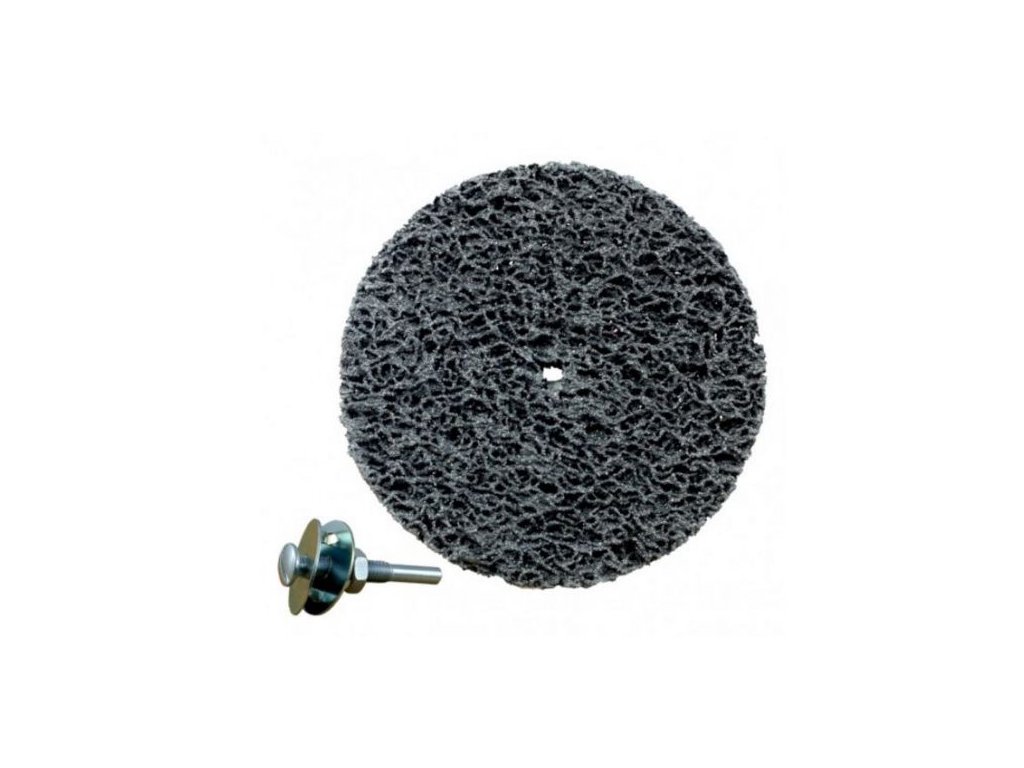 Brusný kotouč na odstraňování rzi s adaptérem, průměr 125 mm. Vyrobeno z tvrdé netkané textilie impregnované pryskyřicí a abrazivním materiálem. Ideální pro odstraňování rzi, barev, tmelů, ochranných vrstev, starých nátěrů, čištění povrchů před a po svařování. Je vhodný jak na ploché povrchy, tak na tvarované kovové části. Umožňuje vám rychle a efektivně odstranit rez nebo barvu z pískovaných prvků. Vyznačuje se vysokou odolností a účinností.