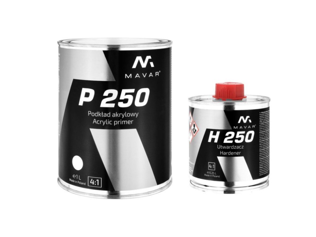 Mavar P-250 je akrylový základní nátěr 4+1 s velmi vysokým obsahem sušiny. Poskytuje vynikající krycí schopnost a vynikající plnicí vlastnosti, což z něj činí ideální volbu pro přípravu povrchu před lakováním.